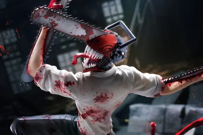Die Statue aus „Chainsaw Man“ kommt als detailreiche PVC Statue.