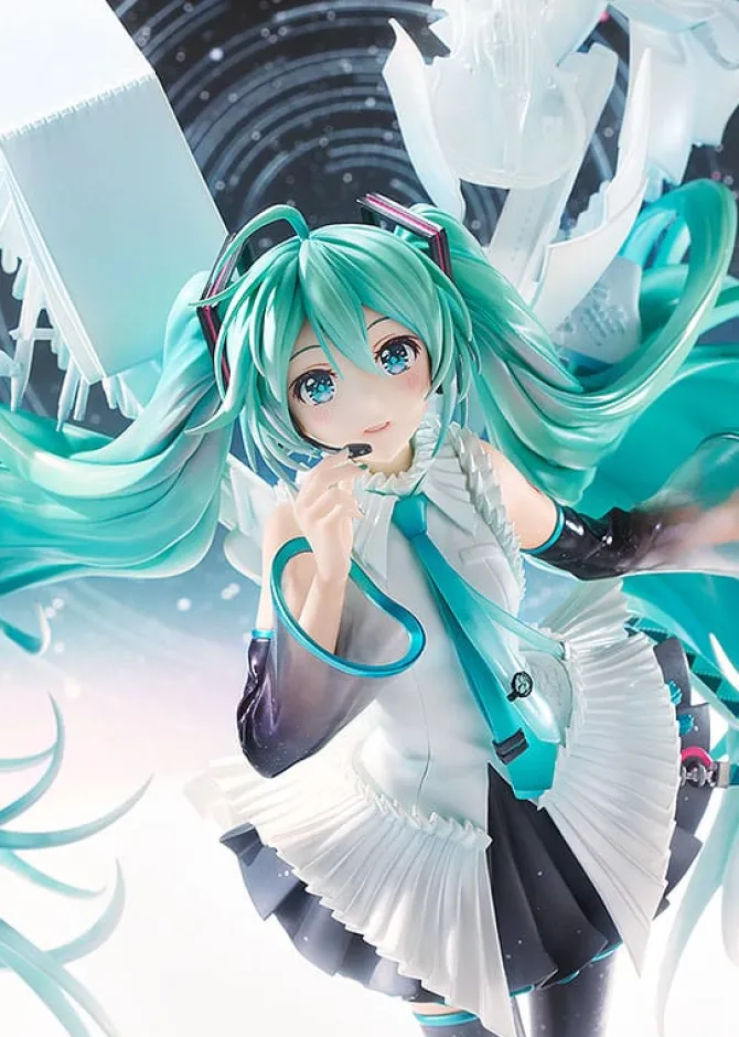 Zu „Character Vocal Series 01: Hatsune Miku“ kommt diese detailreiche Statue von Miku. Die aus PVC gefertigte Statue kommt im Maßstab 1/7 und ist ca. 31 cm groß. Sie wird in einer bedruckten Fensterbox geliefert.