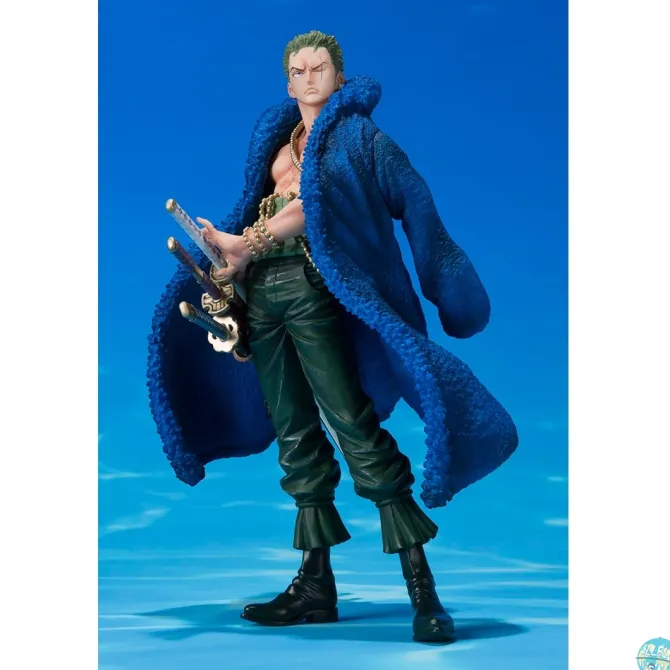 Zum Anime `One Piece´ kommt diese atemberaubende Figur von Zorro aus der FiguartsZERO Reihe in der 20. Jubiläumedition von Bandai. Zorro ist ca. 15 cm groß.