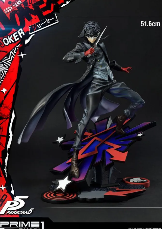Zum Videospiel „Persona 5“ kommt diese fantastische Statue von Joker. Das Sammlerstück ist ca. 52 x 49 x 39 cm groß und wurde aus hochwertigem Polystone gefertigt. Die Statue wird styropor-geschützt, in einer bedruckten Box geliefert.
