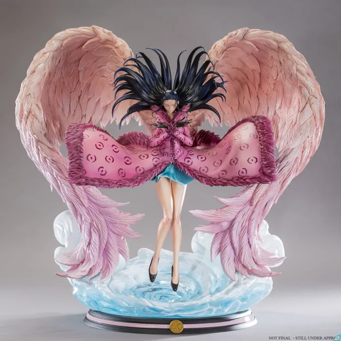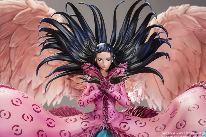 Nico Robin ist die Archeologin der Strohhut Piratenbande. Sie hat von der Flora-Flora-Frucht gegessen, was ihr erlaubt, Körperteile dort wachsen zu lassen, wo sie will. Ihre Cien Fleur: Wing Technik gibt ihr duch das Wachsen von gigantischen Flügeln, die aus Hunderten ihrer Hände bestehen, die Fähigkeit zu fliegen. Die Statue basiert auf der zeichnerischen Darstellung des One Piece Animation Directors Shigefumi Shingaki. Hol dir dieses außergewöhnliche und limitierte Schmuckstück in deine One Piece Sammlung. Limitiert auf 1800 Stück weltweit! Jeder Kunde darf nur eine Statue bestellen!!! Produktbeschreibung in englisch: Nico Robin is the archeologist of the Straw Hat Pirates. She ate the Flower-Flower fruit which allows her to sprout parts of her body anywhere she wants. Her Cien Fleur: Wing technique gives her the ability to fly by growing a pair of giant wings made of hundreds of hands! This statue is based on an illustration drawn by One Piece animation director Shigefumi Shingaki. Robin uses her Cien Fleur: Wing technique to slow down her fall on a snowy floor. The sculpture emphasizes the aerial side of the statue: she’s floating above the ground, her hair and her outfit are lifted up by the air stream, revealing her long and contoured legs. The paint job highlights lifelike textures through a detailed colour set and precise gradients. This is a true piece of art, in continuity with our previous One Piece’s HQS statues, while introducing a more sophisticated touch in Tsume’s work. Achtung: Nicht für Kinder unter 6 Jahre geeignet, Erstickungsgefahr durch Kleinteile!